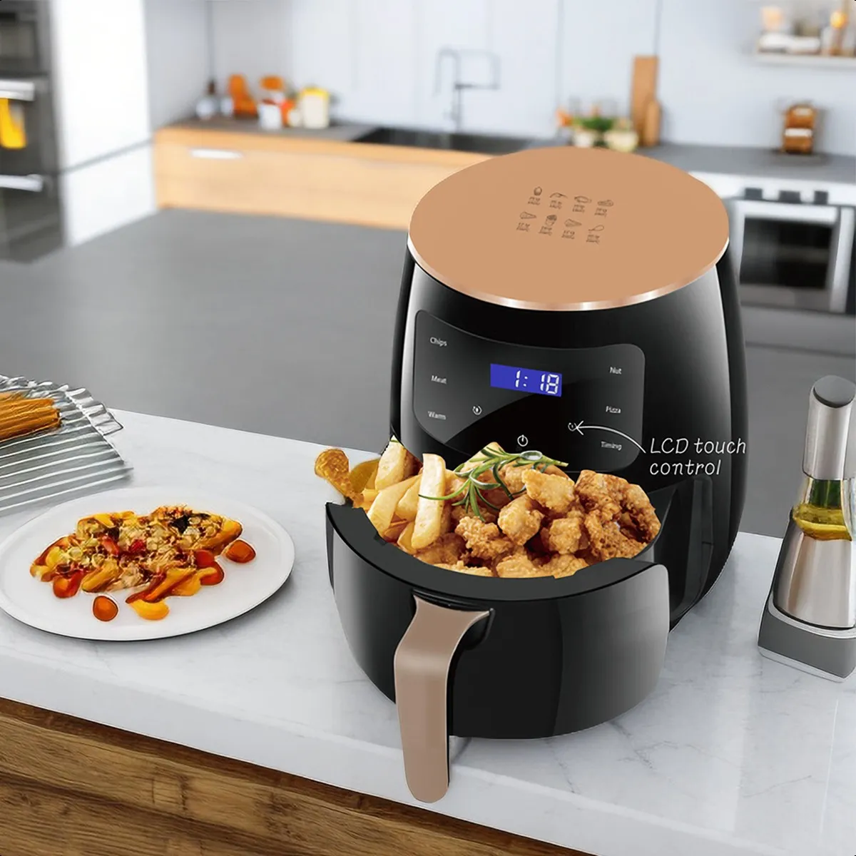 La Freidora de Aire 6L Digital es la solución ideal para quienes buscan disfrutar de comidas deliciosas y saludables. Con una capacidad de 6 litros, permite preparar porciones generosas para toda la familia, optimizando el tiempo en la cocina. Su potente motor de 1.5 kW asegura una cocción rápida y uniforme, logrando resultados crujientes sin necesidad de utilizar grandes cantidades de aceite. El control digital facilita la selección de temperaturas y tiempos de cocción, adaptándose a diferentes recetas y preferencias. Su diseño elegante en color negro no solo es funcional, sino que también se integra perfectamente en cualquier estilo de cocina. Con un solo canasto, es fácil de limpiar y mantener, lo que la convierte en una opción práctica para el día a día. Ideal para quienes desean llevar un estilo de vida más saludable sin renunciar al sabor, esta freidora permite preparar desde papas fritas hasta pollo asado con un mínimo de grasa. Experimenta la versatilidad de la Freidora de Aire y transforma tus comidas en una experiencia culinaria excepcional.